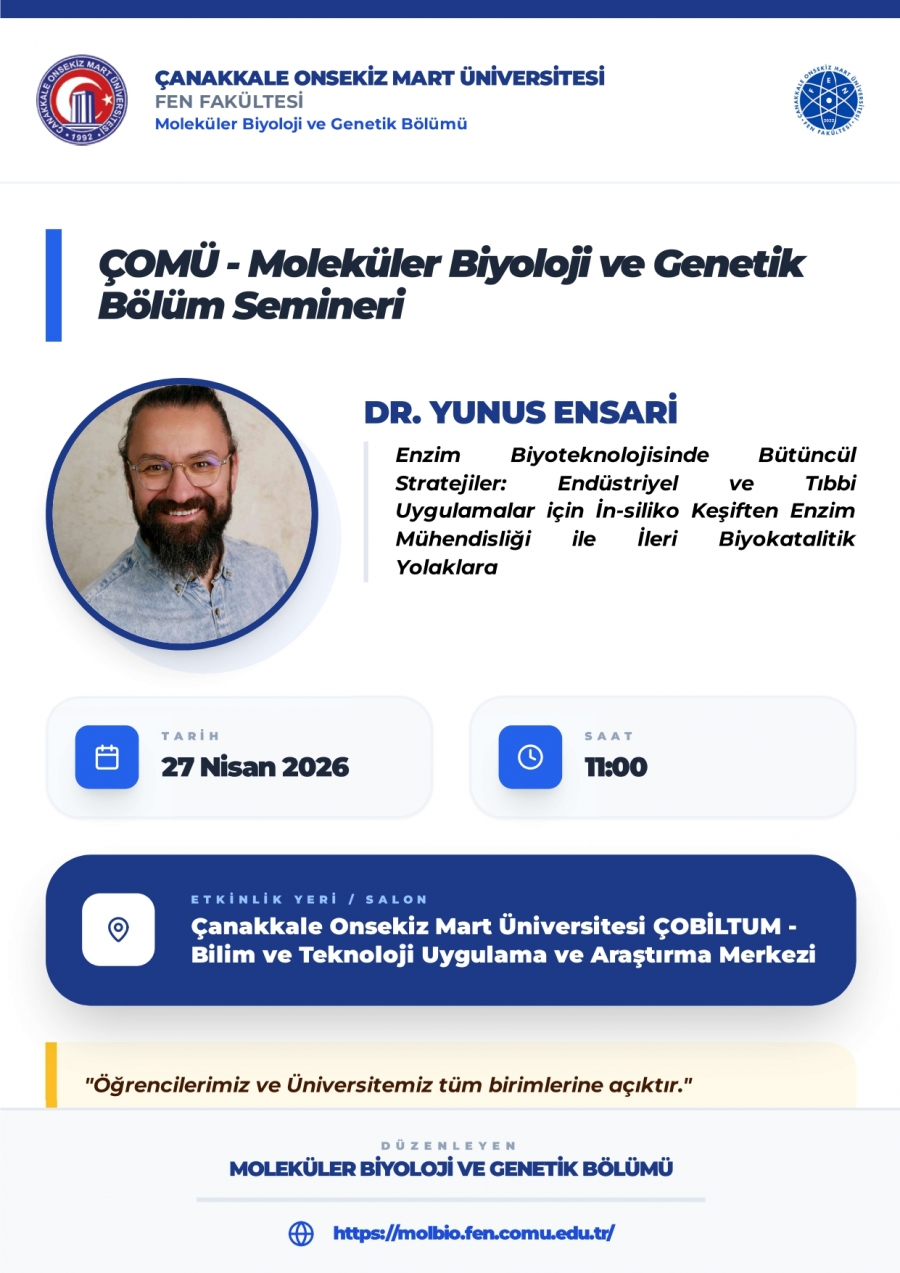 Seminer- Enzim Biyoteknolojisinde Bütüncül Stratejiler: Endüstriyel ve Tıbbi Uygulamalar için İn-siliko Keşiften Enzim Mühendisliği ile İleri Biyokatalitik Yolaklara